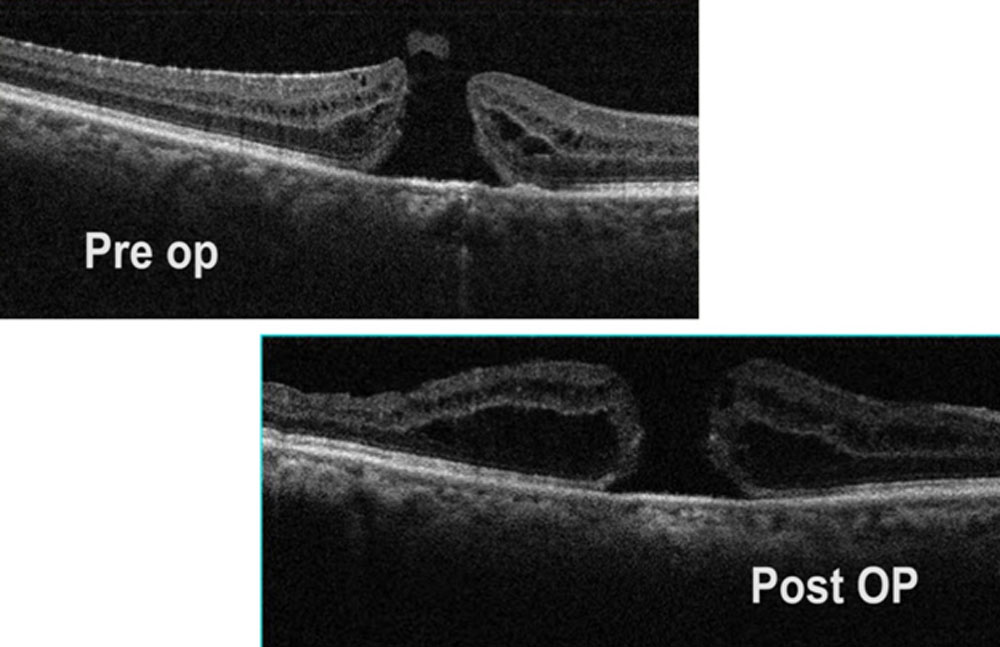 Figure 1: Pre and Post Operative OCT of first surgery